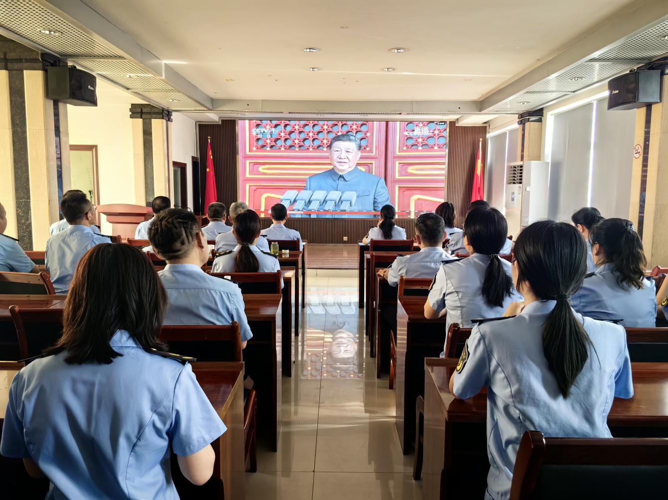 9月3日上午,紀念中國人民抗日戰(zhàn)爭暨世界反法西斯戰(zhàn)爭勝利80周年大會在北京天安門廣場隆重舉行。隨州市交通運輸綜合執(zhí)法支隊第一時間組織全體執(zhí)法人員集中觀看大會直播,在重溫崢嶸歲月中凝聚奮進力量,激發(fā)新時代交通執(zhí)法使命擔當。