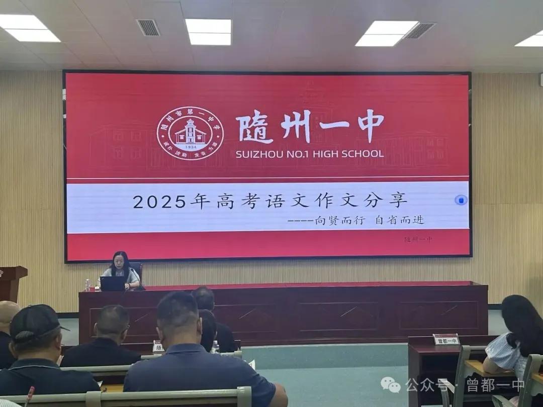 上午8點(diǎn)半,隨州一中資深高考閱卷教師率先以“2025高考試卷評(píng)析暨2026高考備考”為主題,帶來干貨滿滿的分享。從“聚焦命題特點(diǎn),總結(jié)高考規(guī)律”的宏觀解讀,到“解構(gòu)經(jīng)典試題,注重新考銜接”的微觀分析,再到“共享復(fù)習(xí)策略,科學(xué)備考高考”的實(shí)操指導(dǎo),每一個(gè)環(huán)節(jié)都緊扣教學(xué)痛點(diǎn)與備考重點(diǎn)。尤其在作文教學(xué)板塊,主講教師將評(píng)分標(biāo)準(zhǔn)細(xì)化拆解,結(jié)合滿分作文案例剖析立意技巧,更點(diǎn)明了學(xué)生寫作中常見的邏輯斷層、素材濫用等問題,為曾都一中教師搭建了“從評(píng)卷視角看教學(xué)”的全新認(rèn)知框架。老師們時(shí)而專注記錄,時(shí)而拍照留存,不時(shí)舉手提問,現(xiàn)場研討氛圍熱烈,不少教師表示“這份備考指南既有理論高度,又有實(shí)踐溫度,為接下來的教學(xué)指明了方向”。