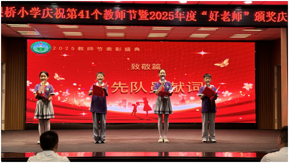 隨州新聞網(wǎng)訊 (通訊員謝珊珊、魏偉唯)為弘揚教育家精神,凝聚育人力量,在第41個教師節(jié)來臨之際,曾都區(qū)五眼橋小學(xué)于9月5日隆重舉行“以教育家精神鑄魂強師 譜寫教育強國建設(shè)華章”為主題的慶祝大會,全體教師和少先隊員代表齊聚一堂,共同見證屬于教育工作者的光輝時刻。
