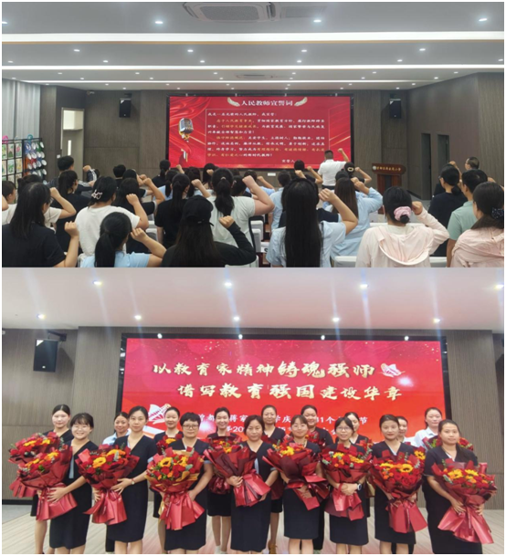 慶祝大會(huì)伊始,校長(zhǎng)胡豪登臺(tái)致辭。他首先向全體教師致以節(jié)日的祝福,充分肯定了過去一年學(xué)校在教育教學(xué)、學(xué)生培養(yǎng)等方面取得的成績(jī),同時(shí)分享了對(duì)教育事業(yè)的深刻思考與未來期許!皩W(xué)校會(huì)持續(xù)加強(qiáng)教師隊(duì)伍建設(shè),為教師創(chuàng)造更好條件,支持教師施展才華,讓教師安心從教,助力每個(gè)孩子幸福成長(zhǎng)!鳖I(lǐng)導(dǎo)的話語(yǔ)既飽含對(duì)教師群體的關(guān)懷,也傳遞出對(duì)學(xué)校發(fā)展的堅(jiān)定信心,贏得了現(xiàn)場(chǎng)陣陣熱烈掌聲。