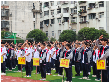 朗誦結(jié)束后,開(kāi)學(xué)典禮進(jìn)入最莊嚴(yán)的環(huán)節(jié) —— 集體宣誓。在八(14)班邱浩桐同學(xué)的帶領(lǐng)下,全體同學(xué)舉起右拳,以青春的名義莊嚴(yán)宣誓,鏗鏘有力的誓言響徹在實(shí)驗(yàn)中學(xué)的校園。