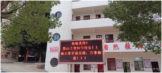 隨州新聞網(wǎng)訊(通訊員葉軍)在第41個(gè)教師節(jié)期間,柳林鎮(zhèn)中心學(xué)校利用電子屏、黑板報(bào)等多種形式慶祝老師們的節(jié)日,舉行了溫馨而簡(jiǎn)短的教師節(jié)慶;顒(dòng),向全體教職員工致以節(jié)日的問(wèn)候與崇高的敬意。