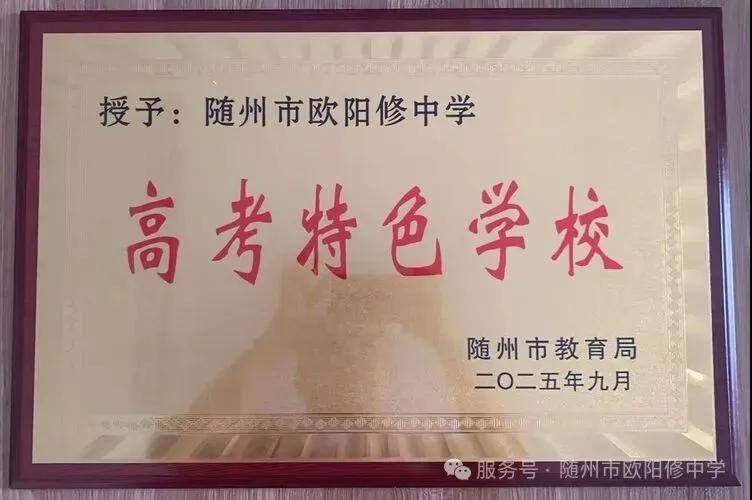 隨州新聞網(wǎng)訊 (通訊員余軍威)捷報(bào)傳佳音,桃李競(jìng)芳菲。近日,隨州市教育局授予隨州市歐陽修中學(xué)“高考特色學(xué)!睒s譽(yù)稱號(hào)。此項(xiàng)殊榮,是我市教育主管部門對(duì)該校辦學(xué)特色、教學(xué)質(zhì)量和高考成果的充分肯定與高度認(rèn)可。