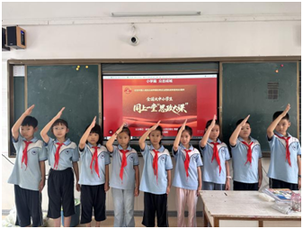 課程最后,當畫面定格于英雄堅毅的面龐,全體隊員自發(fā)肅立,整理紅領巾,高舉右手,向先烈致以最莊嚴的隊禮。這一刻,無聲的緬懷與繼承遺志的堅定決心在教室久久回蕩。