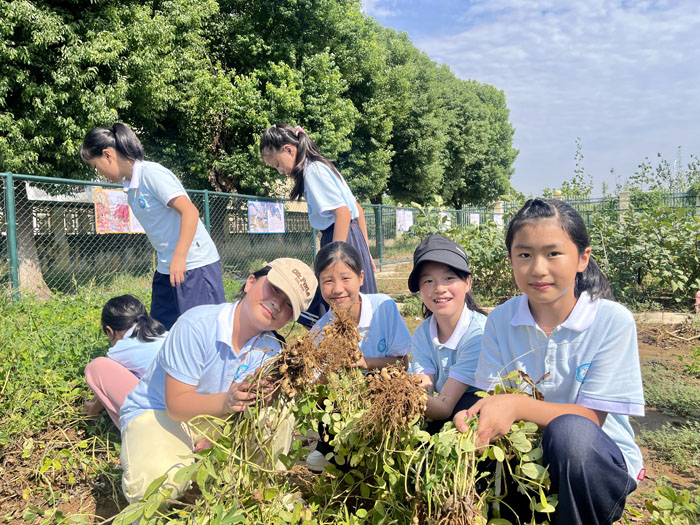 此次挖花生活動(dòng),是學(xué)校勞動(dòng)教育的“延續(xù)篇”——早在上學(xué)年,四年級(jí)師生便在光化校區(qū)勞動(dòng)實(shí)踐基地播下花生種子,歷經(jīng)耕耘,終于迎來(lái)收獲時(shí)刻。活動(dòng)伊始,校長(zhǎng)葉主望也來(lái)到田間,為同學(xué)們示范挖花生的要領(lǐng):“要先順著花生苗根部輕輕撥開(kāi)泥土,再用力將整株花生連根拔起,這樣才不會(huì)碰掉土里的果實(shí)。”生動(dòng)細(xì)致的講解,讓同學(xué)們快速掌握了挖花生的技巧。