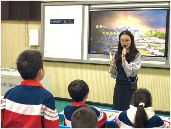 陳琳老師為六年級學(xué)生帶來古詩《浪淘沙》(其一)。陳老師以生動的語言帶領(lǐng)學(xué)生走進古詩意境,從詩句賞析到情感體悟,層層深入。周紫桐老師為五年級學(xué)生呈現(xiàn)《圓明園的毀滅》一課。周老師通過豐富的史料、直觀的圖片、視頻,引導(dǎo)學(xué)生了解圓明園昔日的輝煌與毀滅的慘狀。