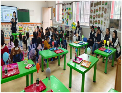 活動中,教師從幼兒年齡特點出發(fā),細致揣摩、積極探索、精心設(shè)計教學(xué)環(huán)節(jié)。充分利用多媒體課件、教具以及創(chuàng)設(shè)生動有趣的教學(xué)情境等,激發(fā)了幼兒濃厚的學(xué)習(xí)興趣。李梓萱老師小班音樂活動《秋天多么美》,跟著“棉桃姐姐”學(xué)咧嘴唱,伴著“稻花姐姐”練點頭跳。章十佳章老師中班語言活動《甜甜的棒棒糖》,帶著小熊手偶講“獨占糖不開心,分享后變快樂的故事”,還準備了彩色棒棒糖。李金玉老師大班科學(xué)活動《瓶子吹氣球》,看瓶子“吹”起氣球多神奇!孩子親手把材料倒進瓶子,觀察氣球慢慢變大,還能聽老師講“氣體讓氣球鼓起來”的小秘密。