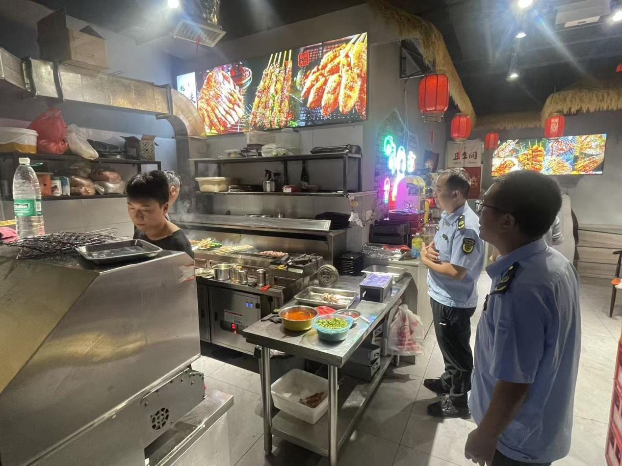 每晚燒烤店營業(yè)時,執(zhí)法隊員便開始逐戶上門,他們走進后廚查看凈化設(shè)備的開啟及使用情況,是否及時進行維護。“我們現(xiàn)在每天都會來確保燒烤店的凈化設(shè)備在正常使用!眻(zhí)法隊員一邊熟練地檢查設(shè)備運行狀況,一邊向商戶介紹道,“主要是看設(shè)備是不是開著,油煙有沒有往屋外排放,這樣你們的就餐環(huán)境有保障,來消費的人也會更安心。”