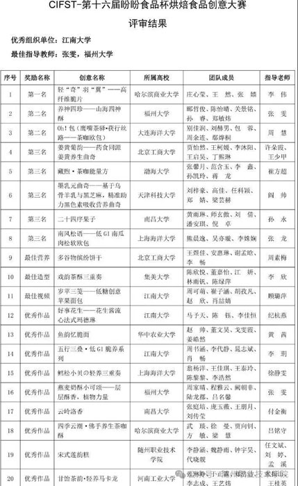 本屆大賽由中國(guó)食品科學(xué)技術(shù)學(xué)會(huì)(CIFST)主辦,以“盼享美味,健康+焙”為主題,旨在挖掘和培育食品工業(yè)創(chuàng)新人才。自今年4月啟動(dòng)以來(lái),大賽共收到來(lái)自全國(guó)20余所高校的近200份創(chuàng)意計(jì)劃書(shū)。經(jīng)限額推薦、初賽評(píng)審,40份作品入圍復(fù)賽。經(jīng)業(yè)內(nèi)專(zhuān)家評(píng)審,最終評(píng)選出20份優(yōu)秀作品。