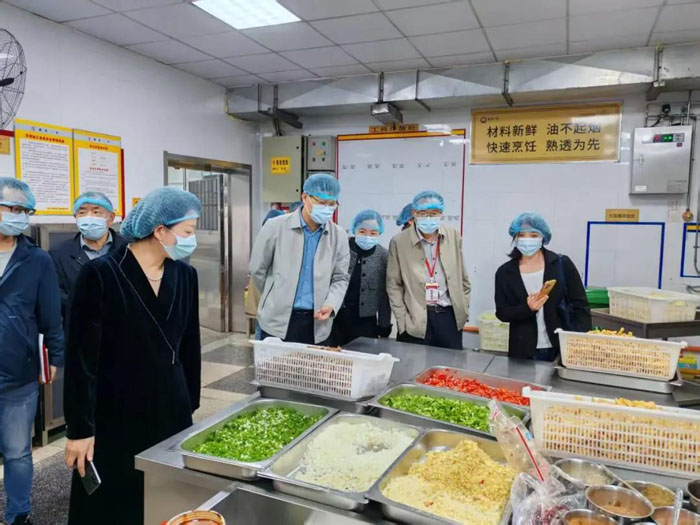 會議結(jié)束后,與會領(lǐng)導(dǎo)陪同家長代表先后參觀了食材入庫區(qū)、存儲倉庫和加工區(qū)域。觀摩食材的清洗、加工過程。并對家長關(guān)心的食材溯源、衛(wèi)生標(biāo)準(zhǔn)等問題逐一答疑。家長代表對食堂整潔環(huán)境與規(guī)范操作給予肯定,隨后與校領(lǐng)導(dǎo)一同體驗(yàn)學(xué)生餐,并深入交流用餐安排、營養(yǎng)搭配等話題,現(xiàn)場氛圍融洽。