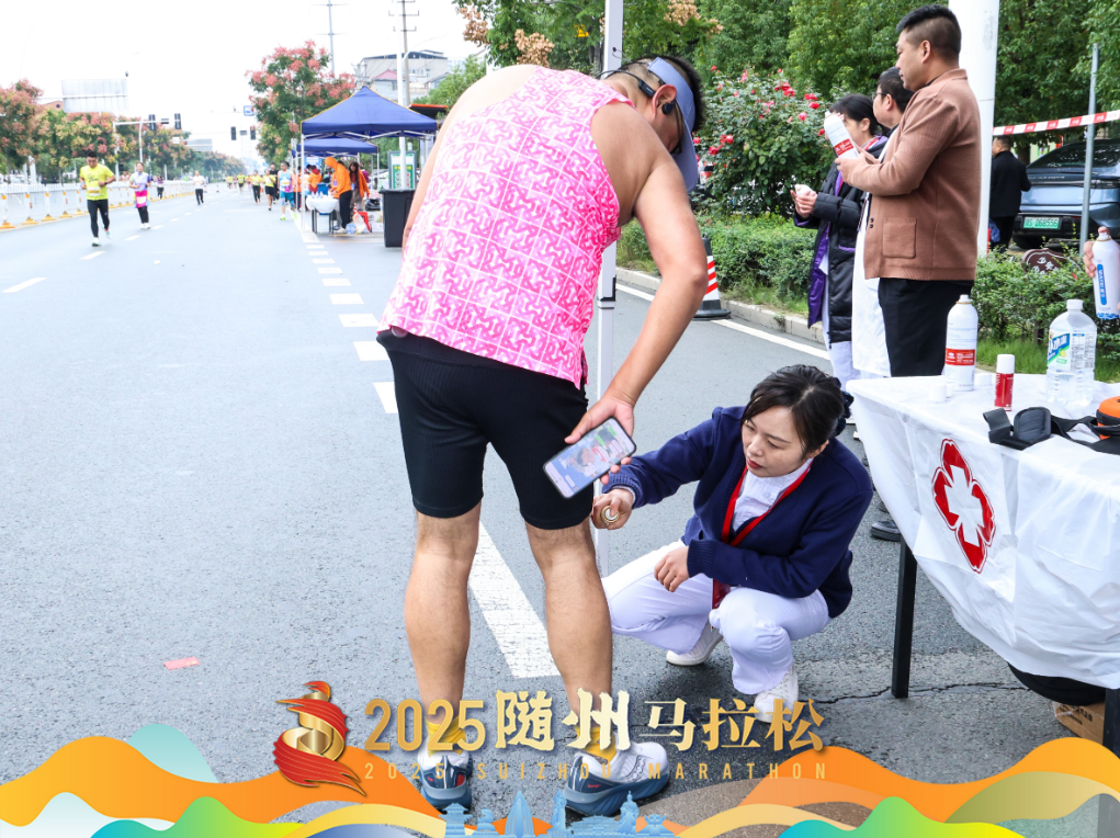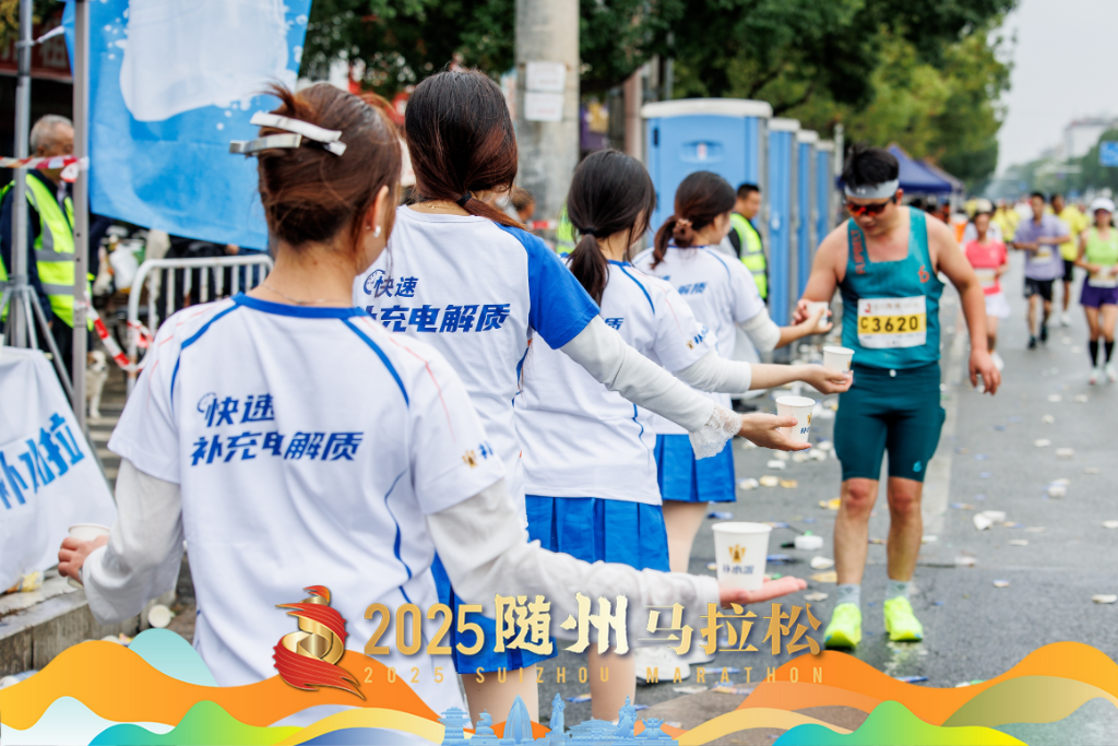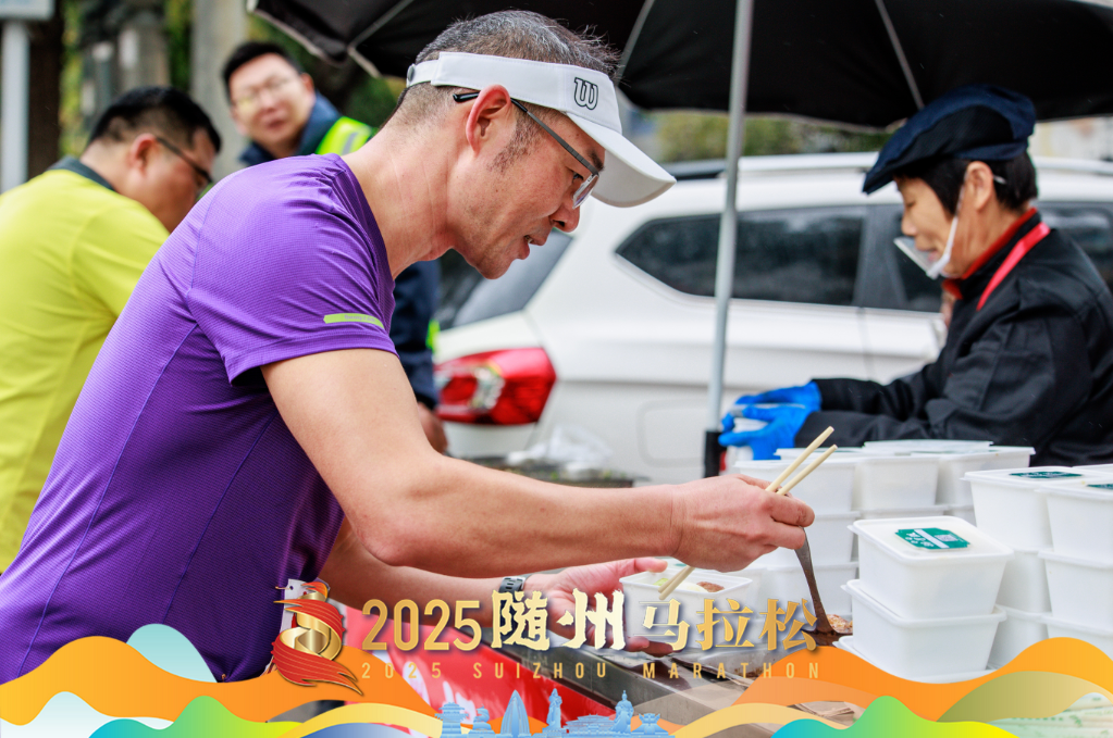 健民藥業(yè)的員工們?yōu)檫x手們倒水千余杯,市中醫(yī)醫(yī)院帶來了特制的跌打損傷膏藥,隨州郵政的小伙伴們守在涢水一橋上……隨州企業(yè)、單位等紛紛在賽道沿線設(shè)置補給站,為跑者們送上補給,提供志愿服務(wù)。賽道終點,正大食品的炸雞塊、虎福瑞的蜂蜜麻花等隨州特色,為選手補充能量。