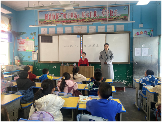 本次活動以班級為單位有序開展。室內(nèi)課堂常規(guī)展示環(huán)節(jié),聚焦“課堂實(shí)用性”呈現(xiàn)細(xì)節(jié):課前準(zhǔn)備,上課鈴聲響后,學(xué)生快速將課本、文具擺放整齊,師生問好,聲音洪亮且富有朝氣;課堂讀寫姿勢,讀書時(shí)雙手扶書、腰桿挺直,視線與書頁保持45度角,寫字時(shí)做到“頭正肩平身直足安”;下課時(shí)“人起身凳回位”,同時(shí)保持座位周邊干凈整潔。整個過程銜接流暢自然,展現(xiàn)出日常訓(xùn)練的扎實(shí)成效。