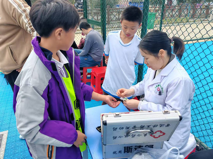 賽場邊,三里崗鎮(zhèn)衛(wèi)生院的醫(yī)護(hù)人員全程值守。他們設(shè)立臨時醫(yī)療點(diǎn),備足急救藥品。醫(yī)護(hù)人員隨時待命,為球員們的健康安全保駕護(hù)航,成為賽場上最溫暖的守護(hù)者。作為東道主,三里崗鎮(zhèn)小學(xué)的辦賽能力在細(xì)節(jié)中盡顯:從賽前場地的反復(fù)調(diào)試、賽程表的精準(zhǔn)排布,到賽中裁判的專業(yè)調(diào)度、參賽隊(duì)伍的后勤保障,每一個環(huán)節(jié)都透著“以賽促交流”的用心。