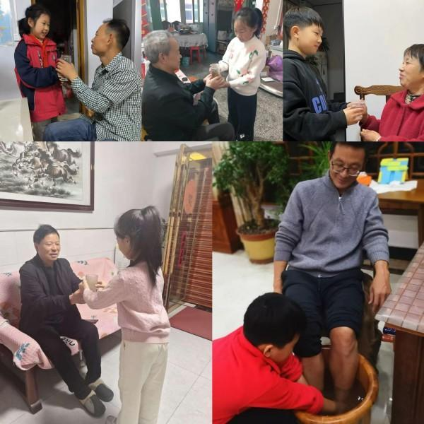 放學(xué)后同學(xué)們積極踐行德育要求,開展了豐富多彩的家庭實踐活動:有的為爺爺奶奶捶背揉肩,有的主動承擔家務(wù),有的端上一杯熱茶、送上一句暖心祝福,還有的與長輩分享重陽故事。小小的舉動傳遞著真摯的情感,讓長輩們感受到濃濃的關(guān)懷與溫暖。