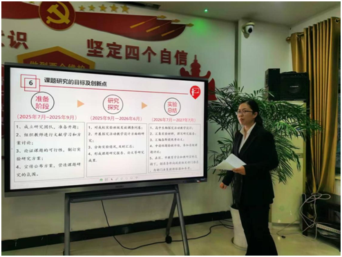 會(huì)上,熊良翠首先宣讀《2025年湖北省教育科學(xué)規(guī)劃一般課題立項(xiàng)通知書》,正式拉開開題序幕。隨后,課題主持人陳燕作開題報(bào)告,從多維度系統(tǒng)闡述課題核心內(nèi)容:在剖析傳統(tǒng)教學(xué)痛點(diǎn)時(shí),她指出當(dāng)前高中生物探究活動(dòng)存在“設(shè)計(jì)碎片化、評(píng)價(jià)重結(jié)果、教師實(shí)施能力不足”三大問(wèn)題,這些問(wèn)題制約了生物學(xué)核心素養(yǎng)落地;在明確研究框架時(shí),她界定核心概念、梳理研究現(xiàn)狀,結(jié)合建構(gòu)主義教學(xué)理論,確定采用對(duì)比研究、案例分析等方法,分階段推進(jìn)課題,并細(xì)化課題組人員分工與預(yù)期成果形式,強(qiáng)調(diào)“按時(shí)提交資料、系統(tǒng)整理歸檔”是課題扎實(shí)開展的關(guān)鍵。