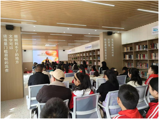 與此同時(shí),在嶄新的“大洪山書(shū)苑”內(nèi),全國(guó)司法行政系統(tǒng)心理矯治專家賈俊為師生家長(zhǎng)帶來(lái)了一場(chǎng)別開(kāi)生面的心理輔導(dǎo)講座。憑借30年心理工作實(shí)踐經(jīng)驗(yàn),賈俊深入闡釋了閱讀與心靈成長(zhǎng)的內(nèi)在聯(lián)系,精準(zhǔn)剖析了鄉(xiāng)村兒童的心理特點(diǎn)與需求。她重點(diǎn)探討了領(lǐng)讀者在鄉(xiāng)村兒童成長(zhǎng)中的關(guān)鍵角色定位,詳細(xì)講解了如何根據(jù)鄉(xiāng)村兒童的心理特點(diǎn)設(shè)計(jì)并開(kāi)展有效的領(lǐng)讀活動(dòng)。最后,她還為在場(chǎng)的教育工作者和家長(zhǎng)提供了實(shí)用的自我賦能方法,幫助領(lǐng)讀者在陪伴孩子成長(zhǎng)的過(guò)程中獲得自我提升。整場(chǎng)講座將心理健康教育與閱讀推廣深度融合,為鄉(xiāng)村兒童的健康成長(zhǎng)提供了專業(yè)支撐。