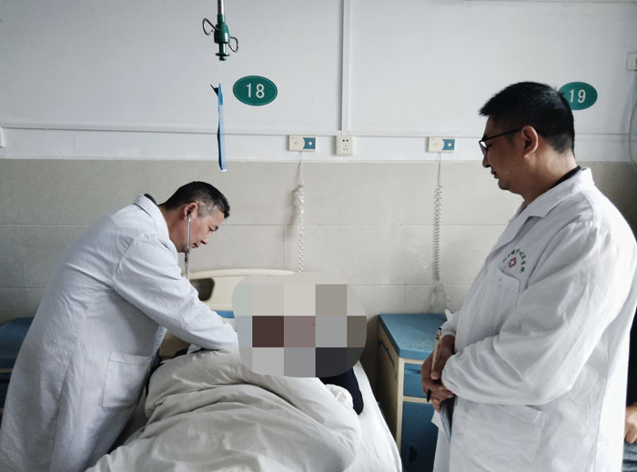 督導途中,意外驟然降臨——花灣村衛(wèi)生室一名孫姓患者輸液時突發(fā)昏迷,伴鼾聲呼吸、小便失禁,病情危急萬分!千鈞一發(fā)之際,肖開韜當即中止督導工作,第一時間靠前坐鎮(zhèn)指揮,沉著精準調(diào)度現(xiàn)場資源。他密切關(guān)注患者身體情況,輕聲安撫慌亂的患者及家屬,始終堅守診療一線統(tǒng)籌協(xié)調(diào),直至患者病情趨于平穩(wěn)、被何店鎮(zhèn)中心衛(wèi)生院120救護車安全轉(zhuǎn)運,才放心離開現(xiàn)場。