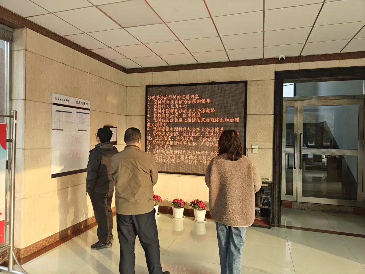 利用陣地載體,延伸宣傳觸角。充分發(fā)揮機關(guān)內(nèi)部宣傳陣地作用,在單位辦公樓顯示屏、執(zhí)法支隊辦公區(qū)域以及執(zhí)法服務(wù)大廳的電子屏幕上,循環(huán)播放憲法宣傳標(biāo)語、憲法知識圖解等內(nèi)容。這種常態(tài)化、可視化的宣傳方式,使干部職工和前來辦事的群眾在潛移默化中接受法治熏陶,鞏固和擴大了憲法宣傳的覆蓋面與影響力。