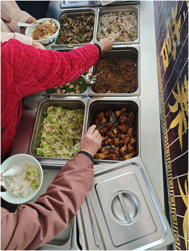 參觀結(jié)束后,家長(zhǎng)們開(kāi)始親自體驗(yàn)自助餐的取餐流程。取餐區(qū)整齊擺放著米飯和菜品,三葷三素搭配合理,色彩誘人,每餐還配有一樣湯品。這種可以讓孩子們“按需取餐、適量添加”的模式,讓家長(zhǎng)們紛紛點(diǎn)贊:“孩子可以根據(jù)自己的口味和食量盛飯,再也不用擔(dān)心飯菜不合胃口或者吃不完浪費(fèi)了!辈簧偌议L(zhǎng)一邊取餐一邊拍照記錄,感慨道:“菜品豐富又新鮮,食堂環(huán)境干凈整潔,孩子在這里吃飯我們很放心。”