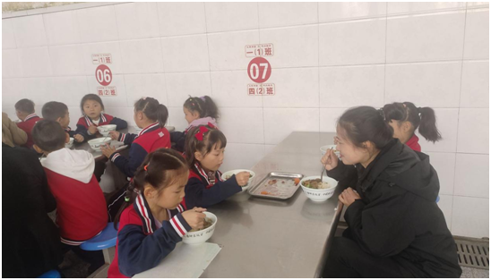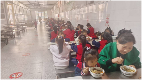 陪餐不僅是“吃飯”,更是生動(dòng)的食育課堂。在共餐過(guò)程中,我們著力打造“四個(gè)一”食育場(chǎng)景:環(huán)境育人:餐廳墻面設(shè)置節(jié)約糧食主題插畫,地面鋪設(shè)有序取餐指引線,營(yíng)造無(wú)聲的“教育場(chǎng)域”。實(shí)踐育人:餐后開展垃圾分類實(shí)操,學(xué)生自主完成餐余垃圾分投與桌面清理。協(xié)同育人:教師與陪餐家長(zhǎng)以身作則,不挑食, 不浪費(fèi),不插隊(duì),踐行“身教勝于言傳”。自主育人:學(xué)生自主完成取餐、收餐具等流程,提升自我管理能力。一年級(jí)(1)班付宇軒同學(xué)主動(dòng)與陪餐母親分享餐食,二年級(jí)(1)班家長(zhǎng)王女士贊揚(yáng)教師“潤(rùn)物細(xì)無(wú)聲”的引導(dǎo)方式。餐桌上不僅盛滿食物,更承載習(xí)慣、禮儀與情感。