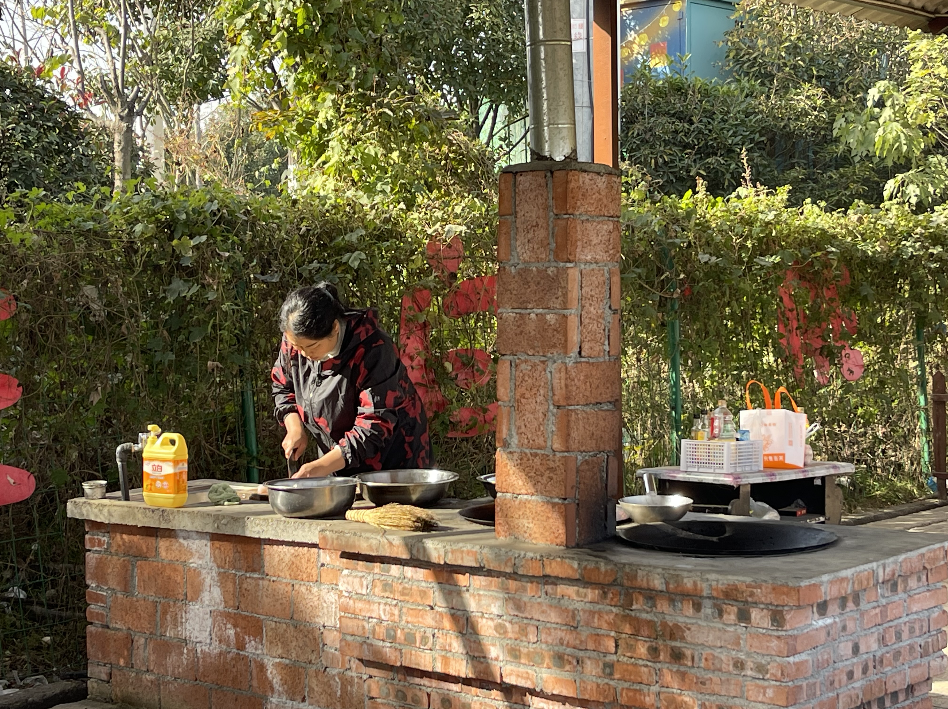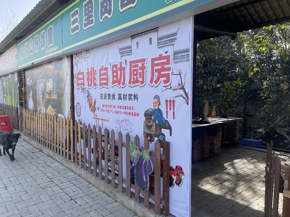 白桃村共享菜園的自助區(qū)可供大家租賃使用,園區(qū)的自助廚房?jī)?nèi),廚具、餐具、調(diào)料一應(yīng)俱全,租戶張女士正忙著加工剛摘的白菜和紫菜苔:“自己種的蔬菜現(xiàn)摘現(xiàn)炒,味道就是不一樣。”