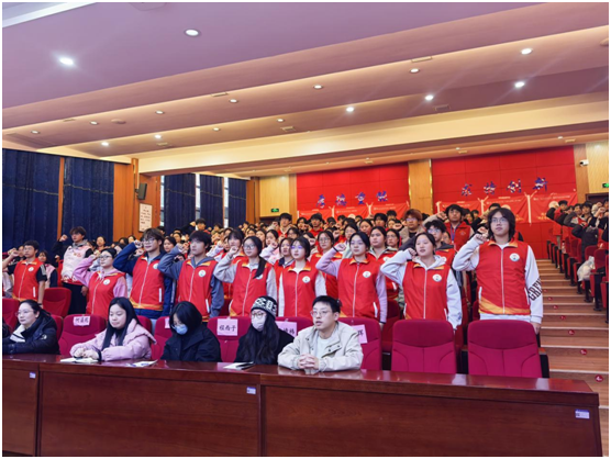 授旗環(huán)節(jié),鄒厚虧向總隊代表授旗,并在講話中指出,旗幟就是方向,責(zé)任重于泰山。一穗青禾,可成萬里春色;一次授旗,能燃青春星火。整合全校志愿服務(wù)資源、打造“神農(nóng)青穗”品牌具有重要意義。他強(qiáng)調(diào),志愿服務(wù)要旗幟鮮明、責(zé)任在肩,希望校團(tuán)委持續(xù)加強(qiáng)組織引領(lǐng),希望市委社會工作部、團(tuán)市委、市志愿服務(wù)聯(lián)合會繼續(xù)給予指導(dǎo)支持。他勉勵志愿者弘揚(yáng)奉獻(xiàn)精神,在服務(wù)社會、服務(wù)民生中踐行青春擔(dān)當(dāng),為強(qiáng)國建設(shè)、民族復(fù)興貢獻(xiàn)職院力量。接著,全體志愿者還在總隊學(xué)生負(fù)責(zé)人鄧鑫杰帶領(lǐng)下進(jìn)行了莊嚴(yán)宣誓。
