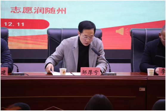隨州新聞網(wǎng)訊 (通訊員余莎)12月11日,隨州職業(yè)技術(shù)學(xué)院舉行“神農(nóng)青穗”志愿服務(wù)總隊授旗儀式暨志愿服務(wù)能力提升培訓(xùn)。學(xué)校黨委委員、副校長鄒厚虧、隨州市委社會工作部四科科長徐智建、隨州市志愿服務(wù)聯(lián)合會會長李冰、學(xué)校黨委宣傳部、學(xué)生工作處、團(tuán)委等部門負(fù)責(zé)人及各二級學(xué)院志愿服務(wù)隊師生代表參加活動。