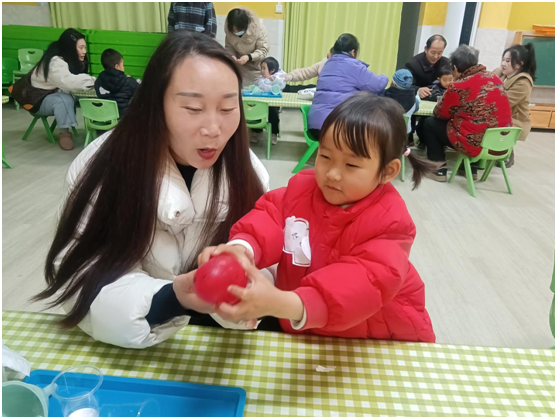 隨后,趣味互動環(huán)節(jié)亮點(diǎn)紛呈:李隨旋老師伴著旋律引導(dǎo)孩子問好破冰;科學(xué)實驗中,萌娃在家長協(xié)助下見證“小河豚”變身的神奇,滿臉驚喜;手工游戲里,卓怡婷老師帶領(lǐng)孩子完成色彩配對粘貼,在動手中收獲樂趣。休整后,皮卡丘老師帶領(lǐng)孩子們走進(jìn)戶外,開展“螃蟹夾”“平衡木氣墊挑戰(zhàn)”等趣味游戲,歡聲笑語彌漫校園。