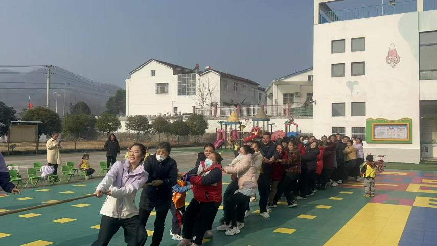 活動伊始,各班萌娃排著整齊的隊伍入場,稚嫩的口號響徹校園。隨后,教師開場舞活力亮相,動感的舞姿瞬間點燃全場氛圍。親子舞蹈環(huán)節(jié)溫馨滿滿,家長與孩子手牽手翩翩起舞,愛意在舞步中流淌。早操展示中,孩子們動作整齊有力,盡顯朝氣與活力。親子游戲輪番上陣,兩人三足、快樂搬運等項目讓家長和孩子玩得不亦樂乎,歡笑聲此起彼伏。壓軸的家長拔河比賽更是將氣氛推向高潮,參賽家長奮力拼搏,場邊啦啦隊吶喊助威,盡顯團隊凝聚力。