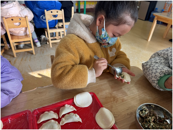 活動(dòng)現(xiàn)場(chǎng),孩子們化身“小小美食家”,在老師的細(xì)致指導(dǎo)下積極參與。他們認(rèn)真模仿攤面皮、舀餡料、捏餃邊的動(dòng)作,不少孩子還發(fā)揮創(chuàng)意,包出元寶形、月牙形、小包子形等各式餃子。盡管餃子形態(tài)各異,但每一個(gè)都飽含孩子們的熱情,教室里歡聲笑語不斷,洋溢著忙碌又歡樂的氛圍。