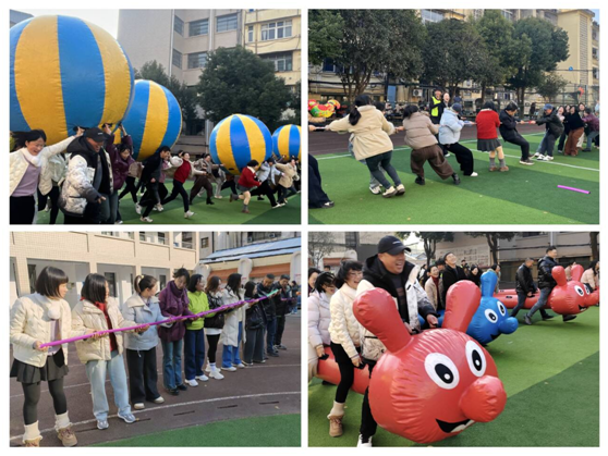 全校教師積極參與,現(xiàn)場氣氛熱烈。比賽設(shè)置的活動項(xiàng)目有:毛毛蟲、眾星捧球、車輪滾滾、珠行萬里、趕雞賽跑、趣味拔河等,既考驗(yàn)力量與速度,又充滿歡聲笑語。老師們在冬日暖陽下全力以赴、配合默契,加油聲、掌聲此起彼伏。