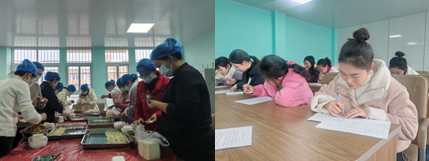 參觀結(jié)束后,家長代表們與食堂工作人員一起體驗(yàn)包餃子,觀看各年級分餐流程,并通過問卷調(diào)查、現(xiàn)場交流等環(huán)節(jié),就菜價公示、營養(yǎng)搭配、餐溫保持等焦點(diǎn)問題與我園負(fù)責(zé)人進(jìn)行深入溝通,代表們從政策監(jiān)管與公共服務(wù)的角度提出了寶貴意見。隨后的家長陪餐環(huán)節(jié),家長代表們親身體驗(yàn)了餐品質(zhì)量與"師幼同質(zhì)同價"的用餐模式,也讓食品安全從“幕后”走向“臺前”,以公開透明的方式凝聚共識、守護(hù)孩子們的健康成長。