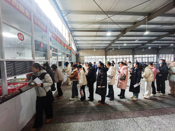 活動(dòng)中,食堂的“智慧”體驗(yàn)成為亮點(diǎn)。家長(zhǎng)們步入食堂,不僅品嘗了泡泡青、粉蒸排骨、牛肉燉土豆等暖心菜肴,更親身體驗(yàn)了“數(shù)字食堂”的便捷與透明,墻上的電子屏實(shí)時(shí)展示“數(shù)字食堂”運(yùn)行管理的各項(xiàng)信息,清晰地看到了后廚實(shí)況,家長(zhǎng)們親身感受到科技讓每一份餐食背后的安全與用心。學(xué)校以數(shù)字技術(shù)守護(hù)傳統(tǒng)美味,用智慧管理兌現(xiàn)健康承諾,讓家校之間的信任紐帶更加牢固。