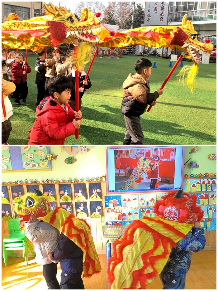 操場上,熱鬧的氣息撲面而來。孩子們十人一組、分工協(xié)作,在老師的指導(dǎo)下舞動著五彩長龍,認真練習(xí)基本步法與動作。一條條巨龍時而盤旋,時而穿梭,動作稚嫩卻充滿童趣。另一邊,小朋友們頭戴特制小獅頭,模仿著醒獅的神態(tài),搖頭晃腦、憨態(tài)可掬,可愛模樣引得陣陣歡笑。