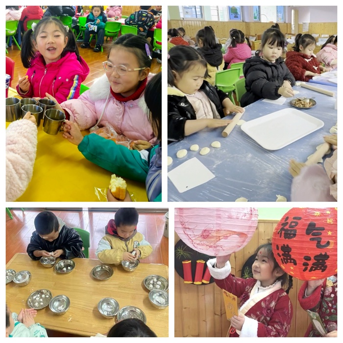 歡樂的氛圍里,當(dāng)然少不了暖心的美食分享環(huán)節(jié)。老師帶著孩子們一起搟面皮、包餃子,雖然包出來的餃子形狀各異,但每一個都裹滿了童真與創(chuàng)意!拔覀冏约喊娘溩幼詈贸裕 焙⒆觽兣踔氤缘酶裢庀闾。有的班級還圍坐在一起,品嘗著熱乎乎的水果茶、湯圓。老師一邊陪著孩子們分享美食,一邊講述著食物里的美好寓意,將飲食文化與節(jié)日教育巧妙融合。