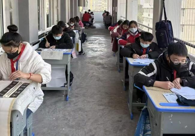 各班參賽的學(xué)生在語(yǔ)文老師的細(xì)致指導(dǎo)下,開(kāi)展規(guī)范書寫訓(xùn)練,從筆畫把控到結(jié)構(gòu)布局逐一打磨,讓“提筆即練字”的理念深入人心。比賽現(xiàn)場(chǎng)氛圍莊重而熱烈,、學(xué)生們坐姿規(guī)范、握筆標(biāo)準(zhǔn),屏息凝神間,將對(duì)漢字的熱愛(ài)融入筆墨,一幅幅作品盡顯書法藝術(shù)的獨(dú)特魅力。