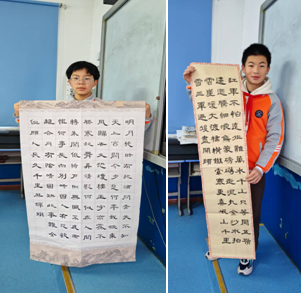 除了創(chuàng)意書法創(chuàng)作,學(xué)校還組織了經(jīng)典詩詞書法展示活動。學(xué)生們以隸書字體書寫《水調(diào)歌頭•明月幾時有》、《七律•長征》等經(jīng)典篇目,一幅幅作品或端莊工整,或剛勁有力,展現(xiàn)出扎實的書法功底和對經(jīng)典文化的理解。
